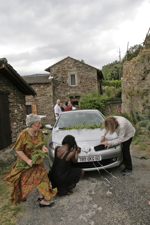 Et puis pour parler d'autre chose, aujourd'hui, j'ai choisi de vous faire partager les coulisse du mariage! Voici pour commencer la préparation de la voiture (tandis que je suis déjà au presbytère avec ma coifeuse!)
